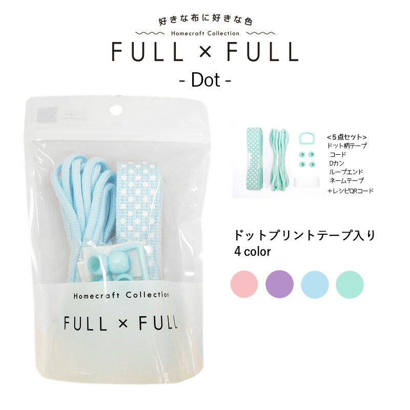 副資材セット FULL×FULL ストライプ柄 全6色 [ テープ・ Dカン・コード・ループエンド・レシピ5種 ] セット | フルフル 持ち手 紐 作り方 レッスンバッグ お着替え袋 巾着 シューズバッグ 通園 通学 入園 入学 ハンドメイド 手芸 手作り